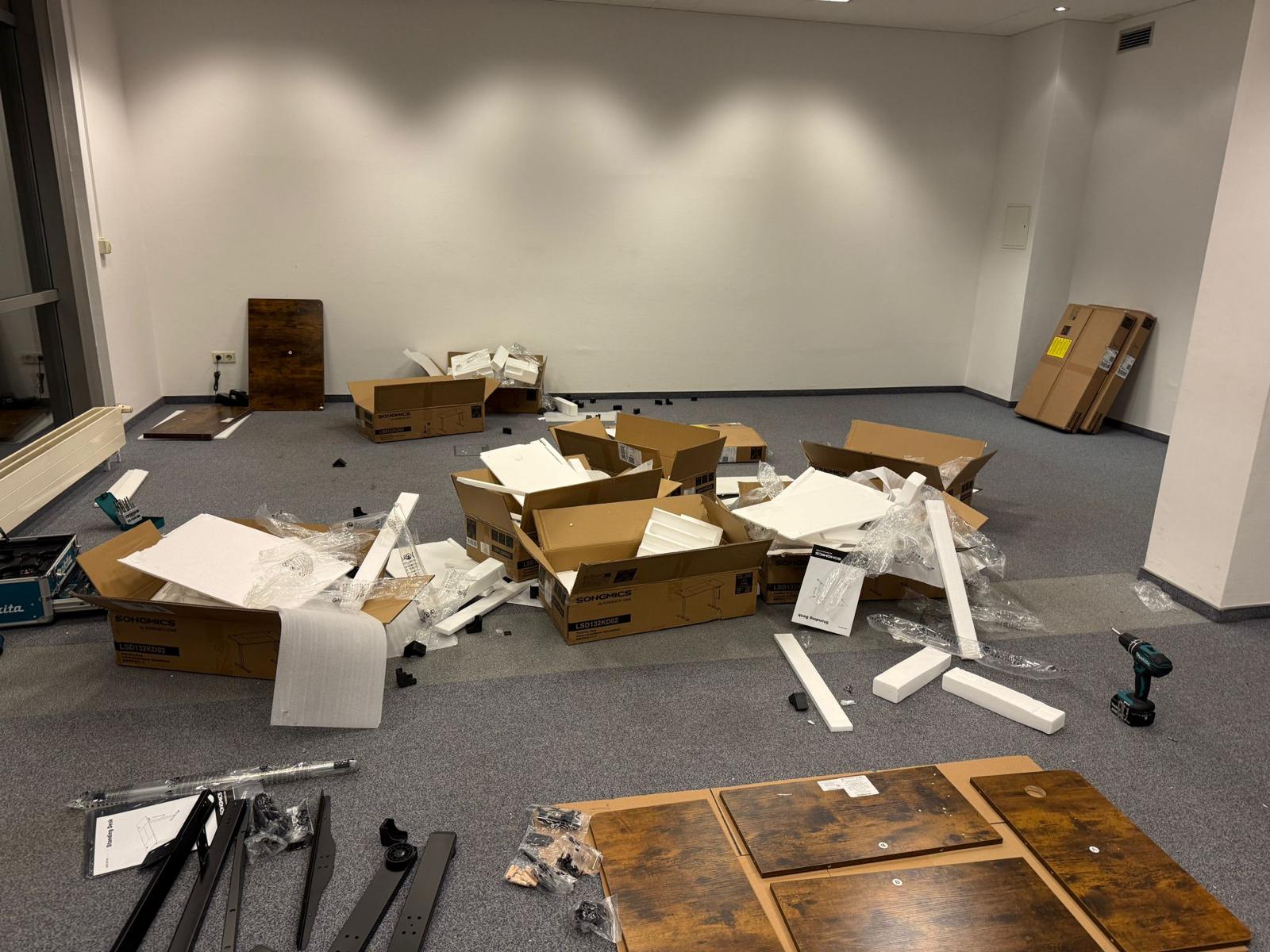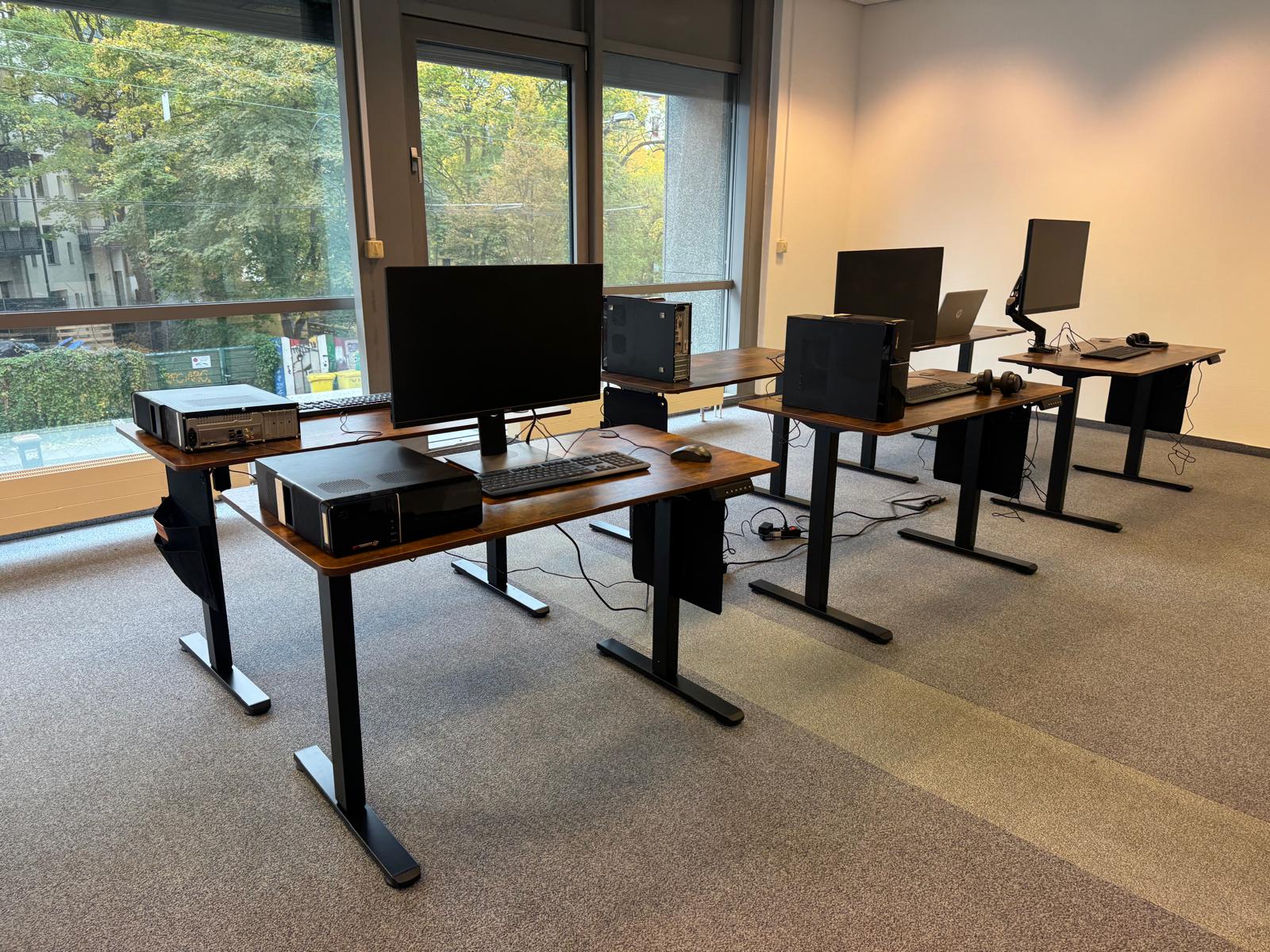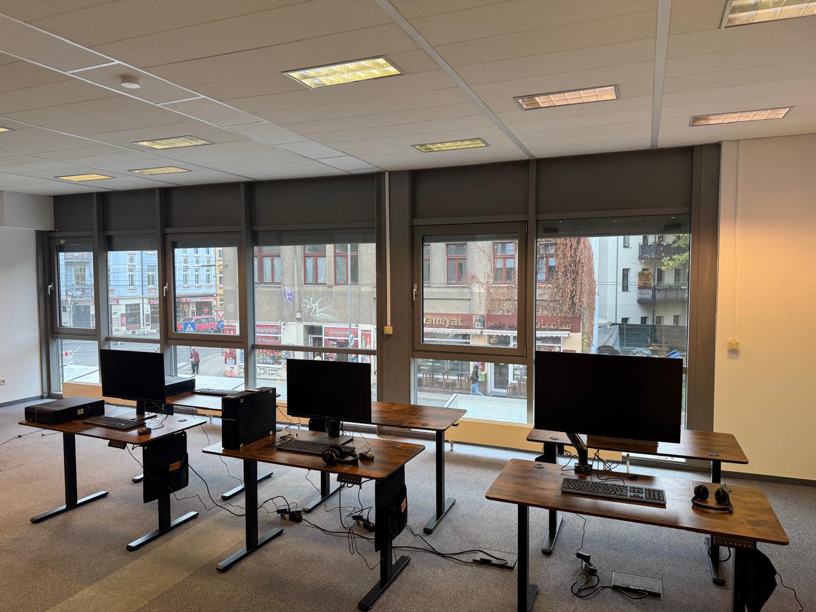Ein besonderer Meilenstein war die Einrichtung des ersten Unterrichtsraums. Hier können wir bereits einen konkreten Eindruck davon gewinnen, wie der Unterricht in unseren neuen Räumlichkeiten aussehen wird. Mit modernen Arbeitsplätzen und einer durchdachten Raumgestaltung schaffen wir optimale Bedingungen für konzentriertes Lernen und kreatives Arbeiten.