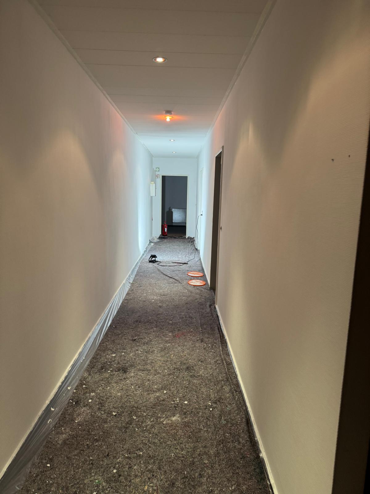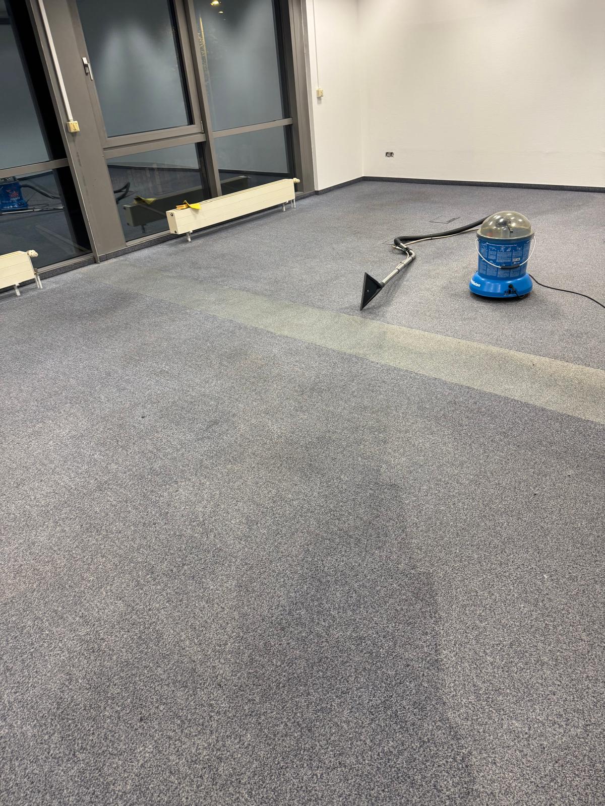 Eine der ersten und wichtigsten Aufgaben war die gründliche Reinigung der vorhandenen Teppichböden. Statt diese komplett zu ersetzen, haben wir uns für eine intensive professionelle Reinigung entschieden – eine nachhaltige und kosteneffiziente Lösung. Das Ergebnis kann sich sehen lassen: Die Teppiche erstrahlen in neuem Glanz und bilden eine saubere Grundlage für unsere weiteren Arbeiten.
